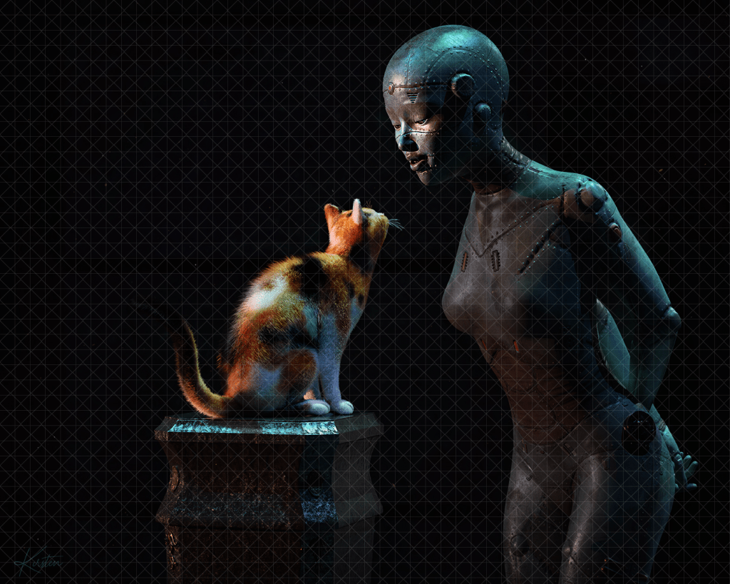 Here is another one with my robot girl. I imagine her seeing everything with the brand new eyes of a child. Inquisitive, yet innocent.Who do you think will win this staring contest?