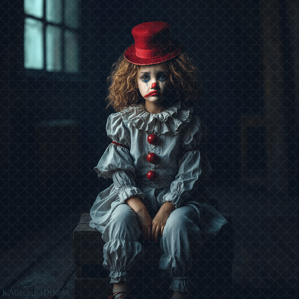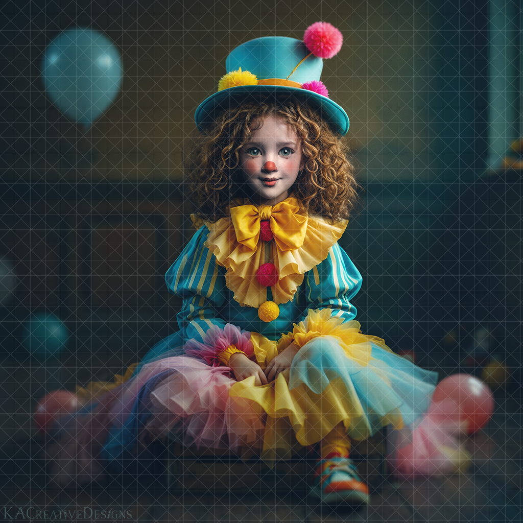 Clowns kind of freak me out. But I didn’t want to be a fuddy dud by being the only one not creating clown images. So, I created some. Then I got asked to create a step by step video of the entire process of how to add a client’s head to the backgrounds and costumes. So, since the teacher sells her collection I couldn’t use her images in the video. Which meant that I had to create the background and costume in NightCafe. All that to say here is the end result. The videos will be on my YouTube channel sometime soon. 🙂